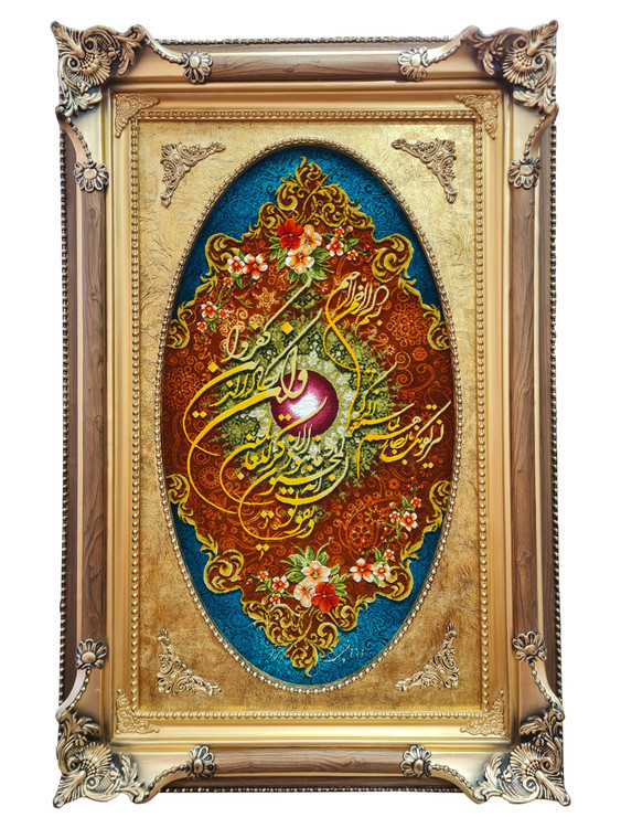 تابلو فرش دستباف بافت تبریز طرح آیه وان یکاد بیضی مارک اذانچی