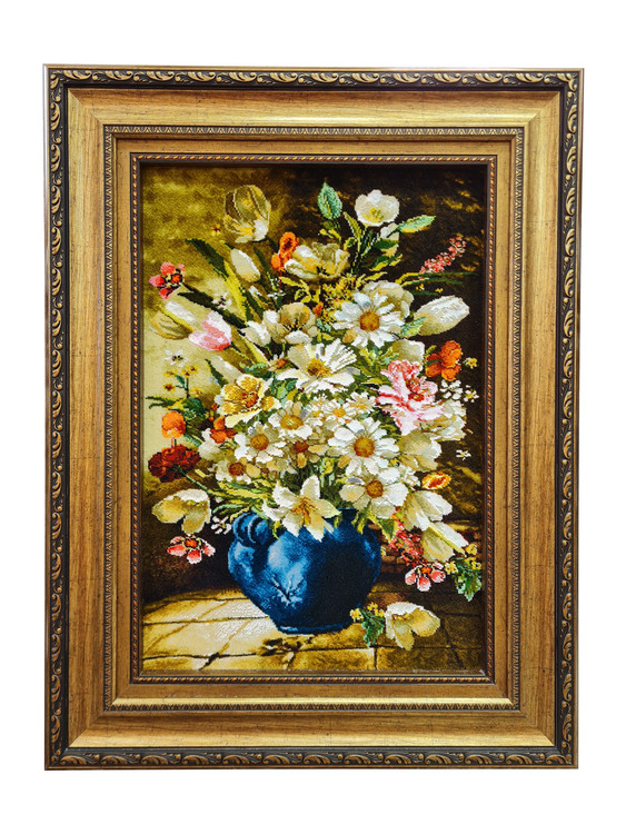 تابلوفرش دستباف بافت تبریز طرح گل طولی گلدان آبی