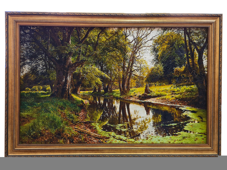 تابلوفرش دستباف بافت تبریز طرح منظره دورنما جنگل و برکه مارک ترابی کد 6861