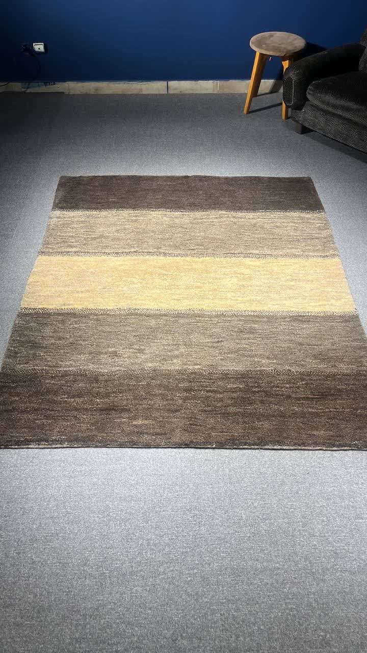 گبه دستباف کردستان با ابعاد ۱۸۷×۱۵۵ سانتیمتر و مساحت حدود ۲.۹۰ متر مربع، نمونهای مدرن و اصیل از فرشهای پشمی عشایری ایران است که با ترکیب طیفهای طبیعی قهوهای و کرم، فضایی گرم، آرام و متعادل ایجاد میکند. طراحی این گبه بر پایه سادگی و هماهنگی رنگهای خنثی شکل گرفته و انتخابی ایدهآل برای دکوراسیونهای مدرن، مینیمال و اسکاندیناوی محسوب میشود.