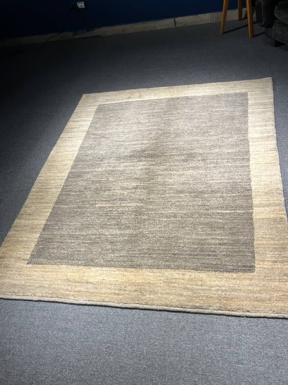 گبه دستباف کردستان با ابعاد ۱۹۷×۱۵۳ سانتیمتر و مساحت حدود ۳ متر مربع، نمونهای مدرن و اصیل از فرشهای پشمی عشایری ایران است که با ترکیب رنگهای خنثی طوسی و کرم، فضایی آرام، شیک و هماهنگ ایجاد میکند. طراحی این گبه بر پایه سادگی و تعادل بصری شکل گرفته و انتخابی ایدهآل برای دکوراسیونهای مدرن، مینیمال و فضاهای امروزی محسوب میشود.