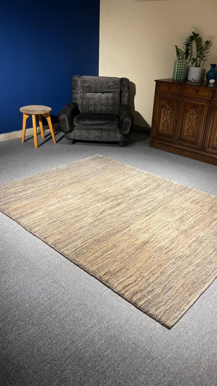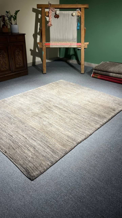 جنس این فرش از پشم طبیعی بوده که علاوه بر لطافت و حس گرما، دوام بالایی در برابر استفاده روزمره دارد. ساختار یکدست و ترکیب رنگهای خنثی باعث میشود این گبه بهراحتی با مبلمان مدرن، چوبی، طوسی و کرم هماهنگ شود و برای دکوراسیونهای مینیمال، اسکاندیناوی و فضاهای هنری انتخابی ایدهآل باشد.
